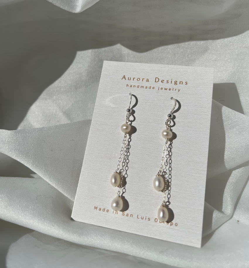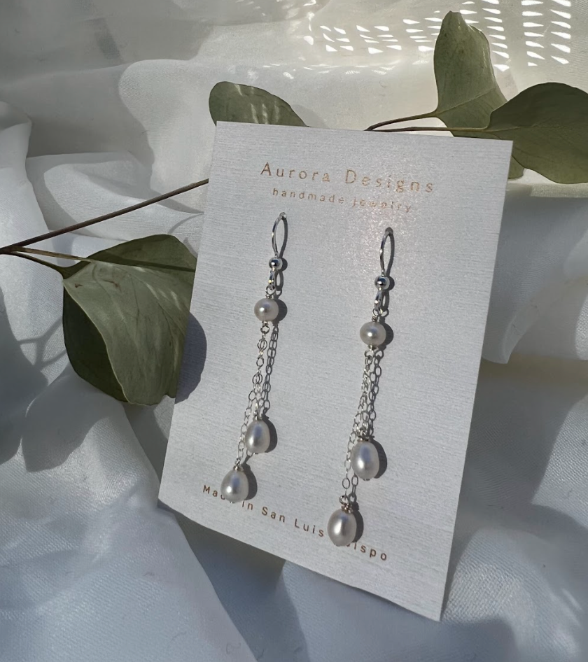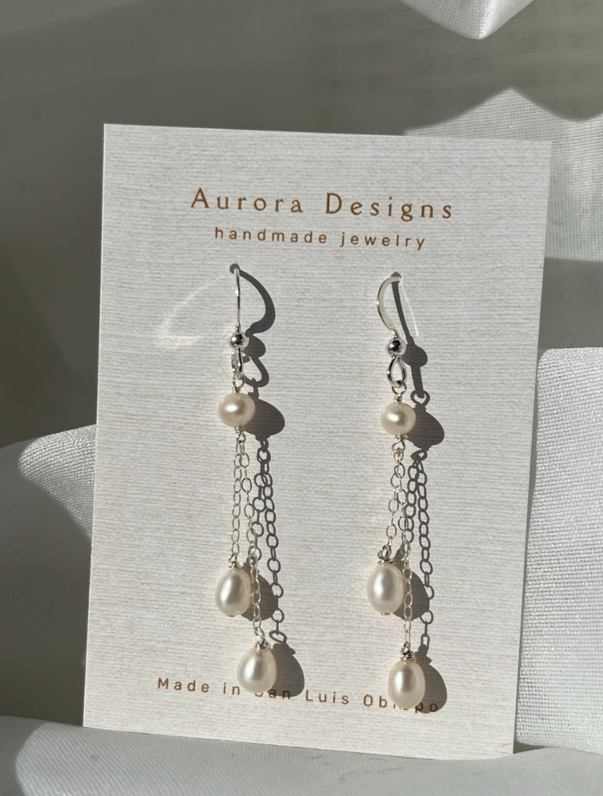 Sterling silver chain paired with freshwater pearls, elegant earrings for any occasion.