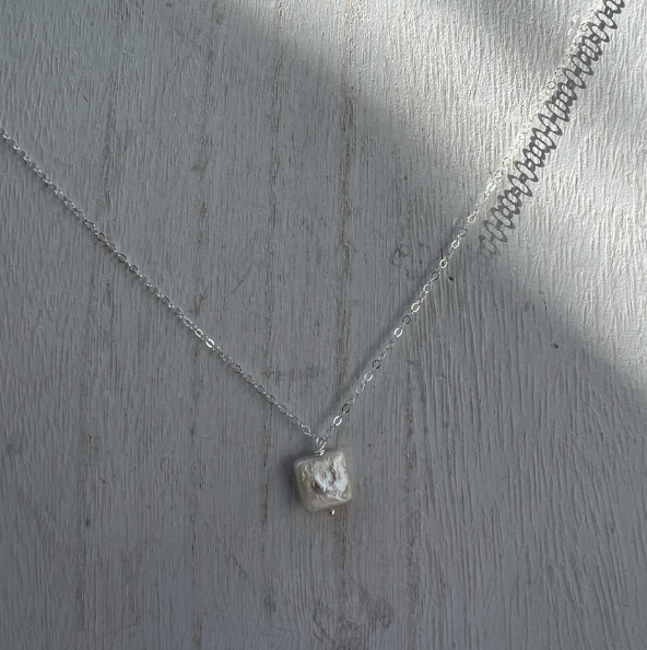 Sterling-silver necklace with a square freshwater pearl.