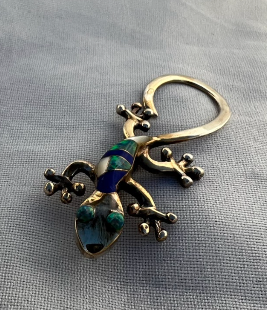 A beautiful versatile pendant that serves as a necklace and a clasp. Stones on the pendant include – Mother of Pearl, Opal, & Lapis