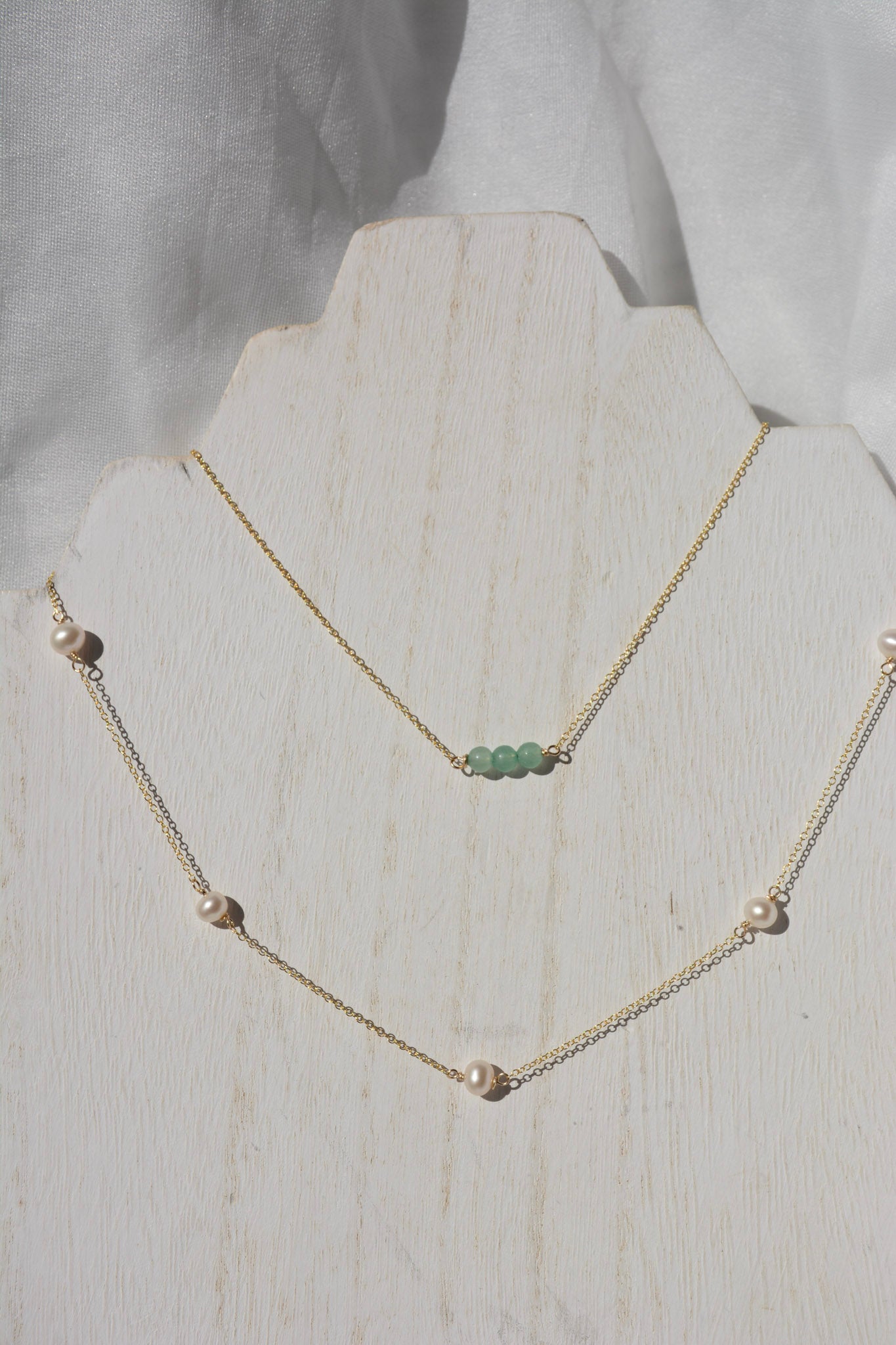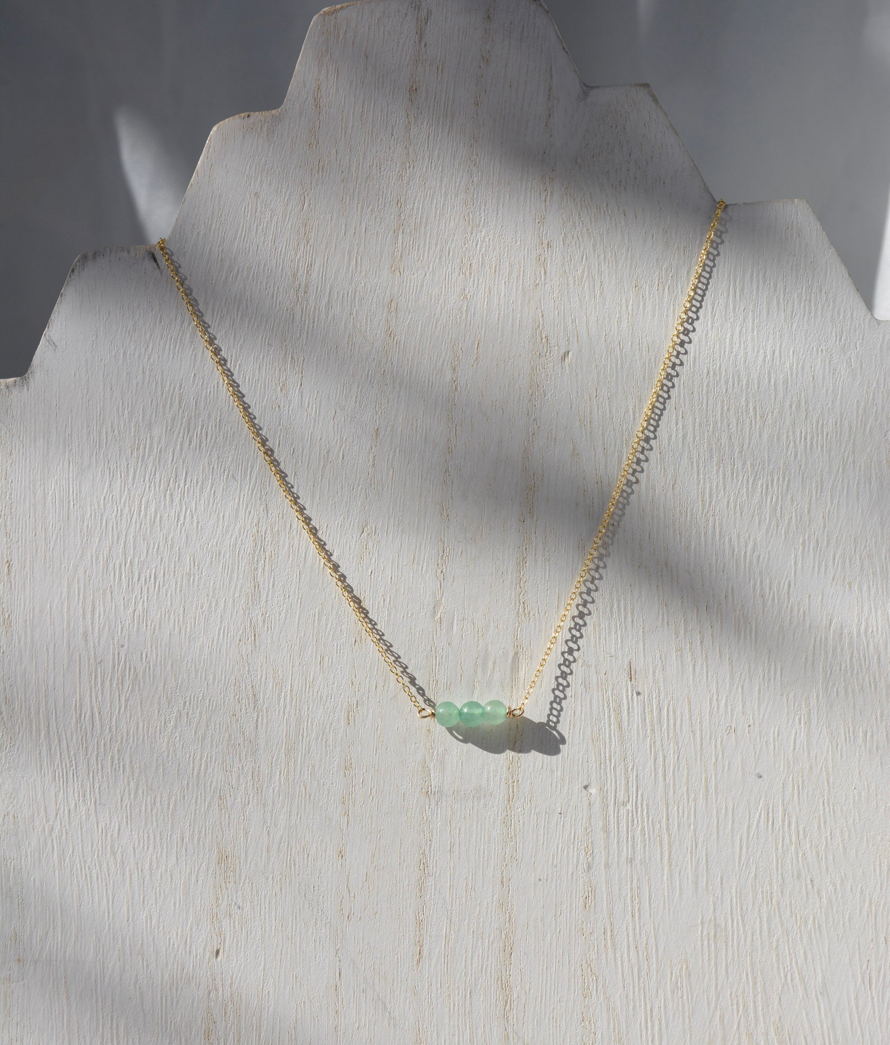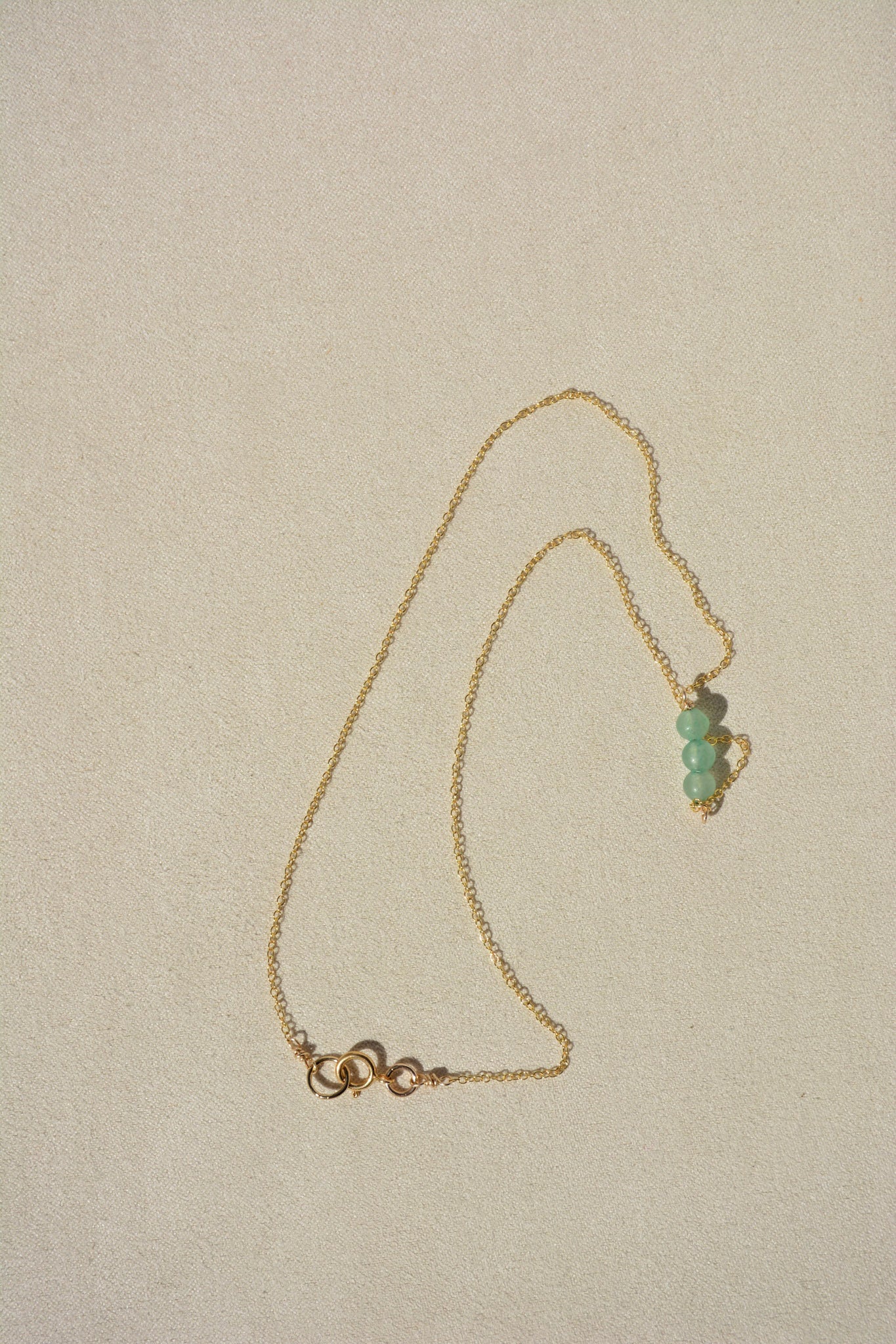 Gold-fill chain paired with 3 small jade beads.